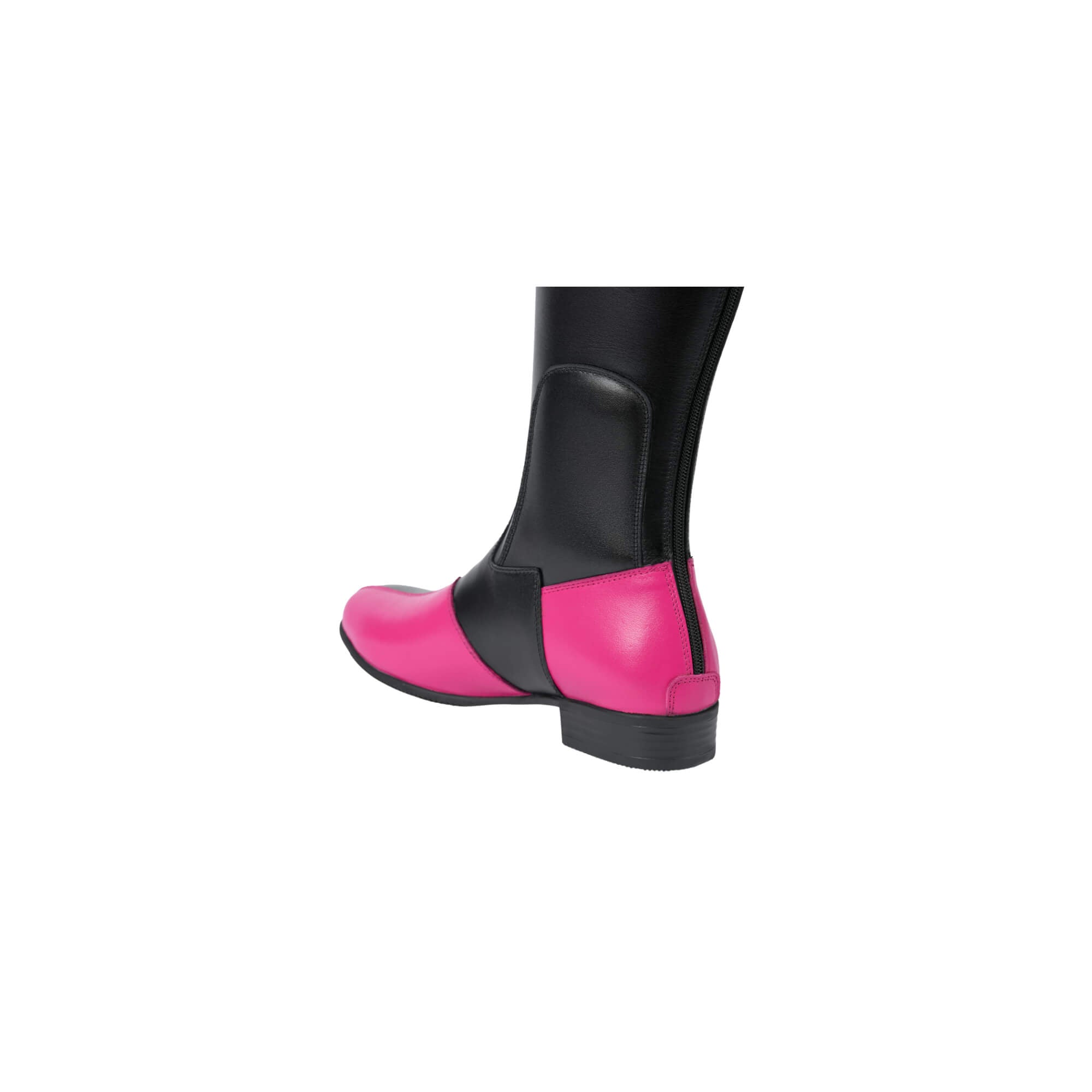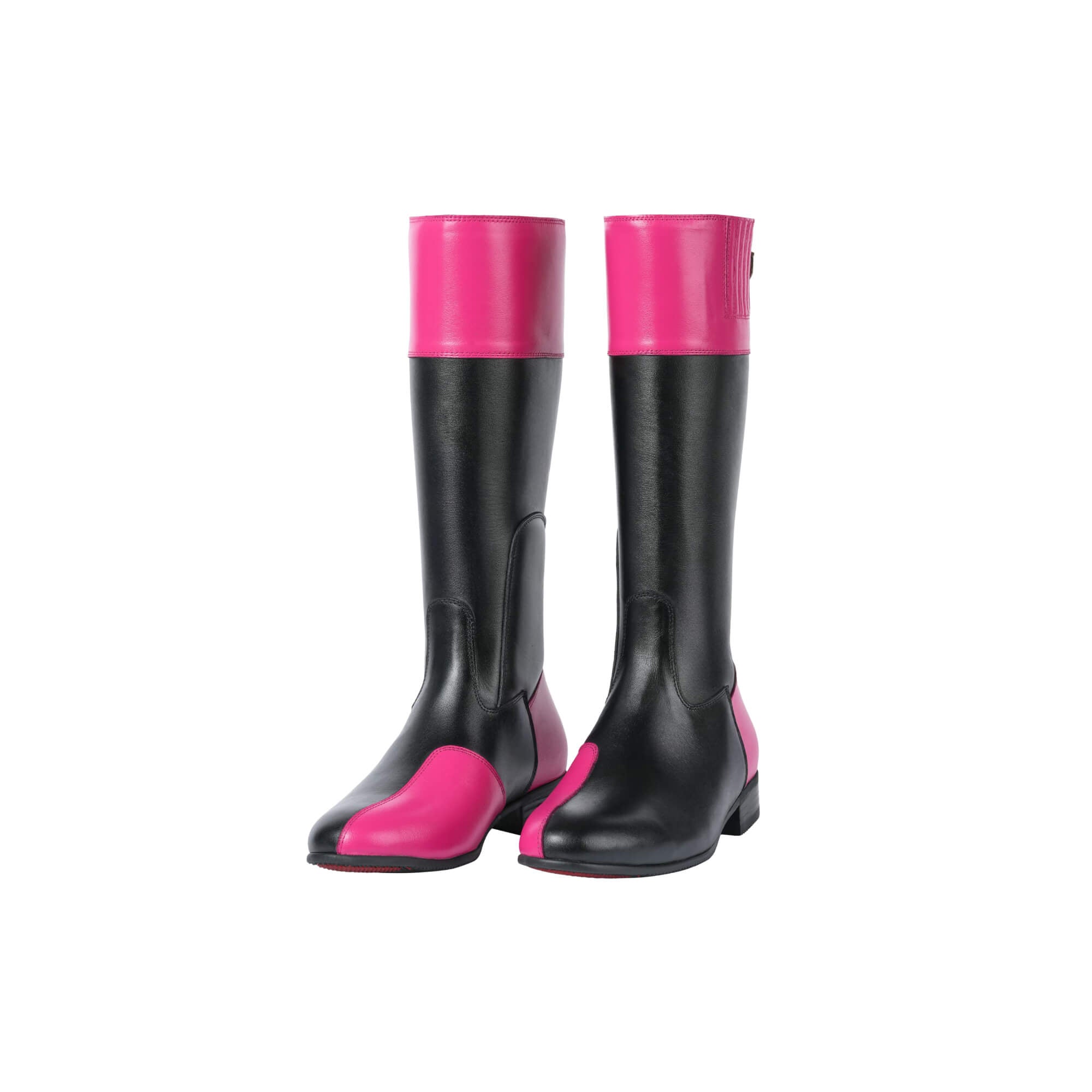 The Menzil Tall Boots in black and pink leather are designed to make a statement without sacrificing elegance. Smooth black leather forms the foundation, while vibrant pink leather panels add a striking contrast that feels confident and modern.