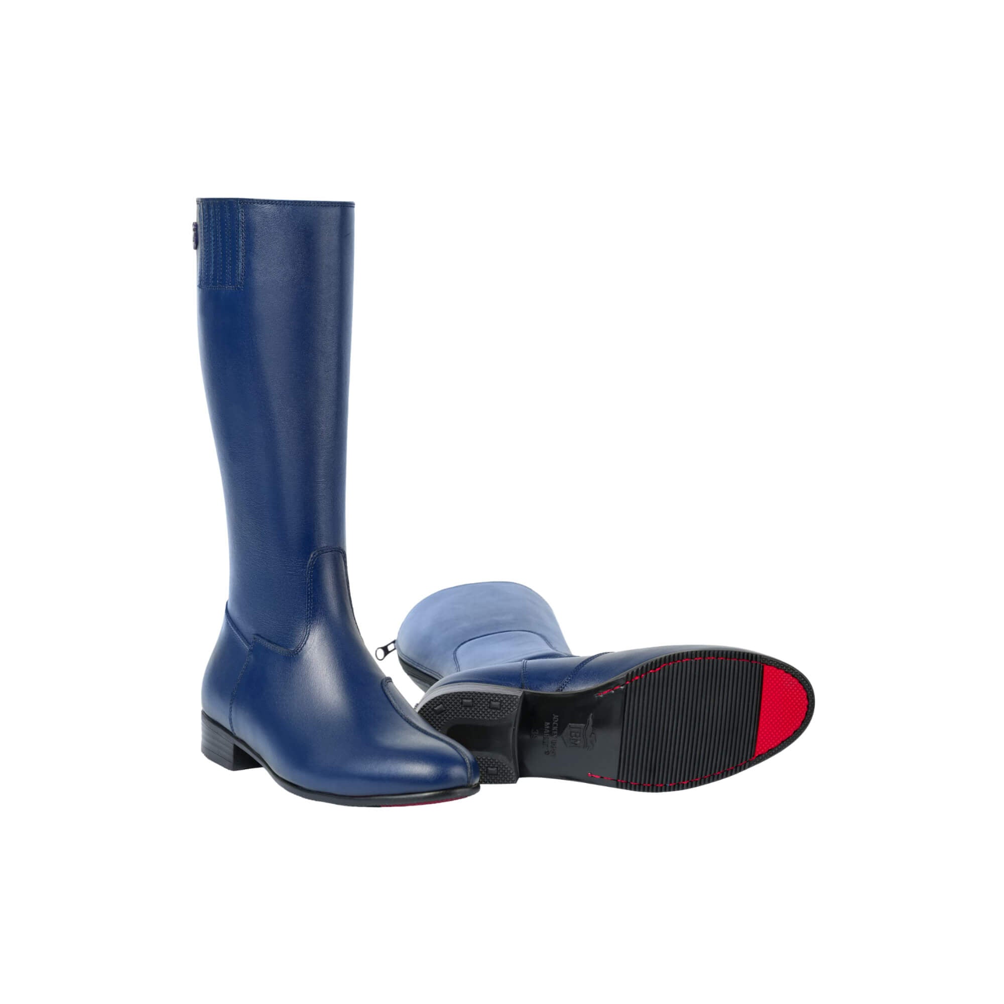 The Victoria tall boot brings a confident, contemporary edge to classic riding style. Crafted from smooth blue leather, its clean, uninterrupted silhouette creates a striking yet refined look that feels both modern and timeless. Designed for riders who prefer understated detail with a strong presence, Victoria offers a comfortable, supportive fit with a streamlined finish. Completed with a full-length zipper and a grippy outsole, this boot is made for everyday performance with unmistakable character.