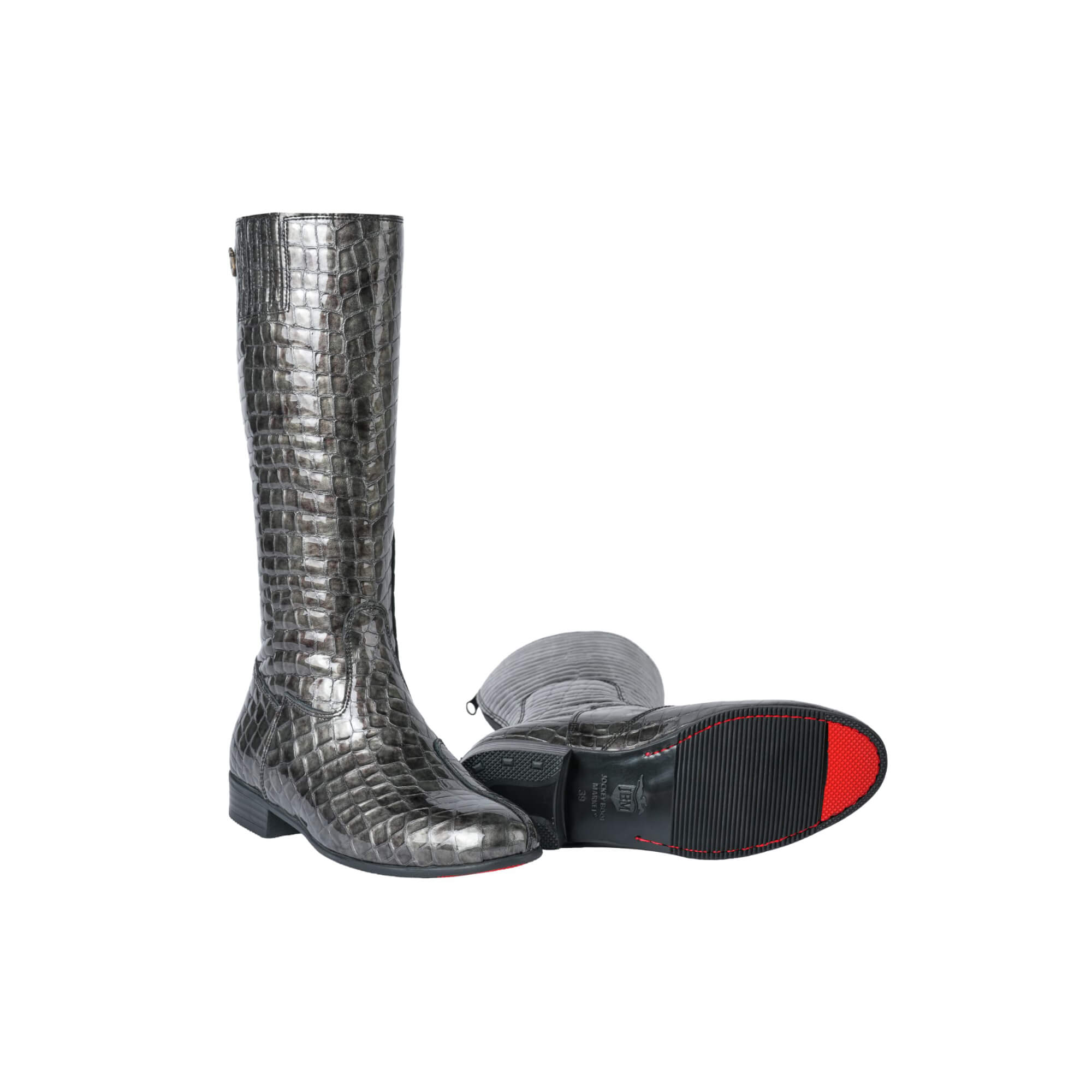 Bold yet timeless, the Victoria Silver Croc Tall Boots are designed to stand out without trying too hard. Crafted in textured silver croc leather, they bring a modern edge to a classic tall boot silhouette.