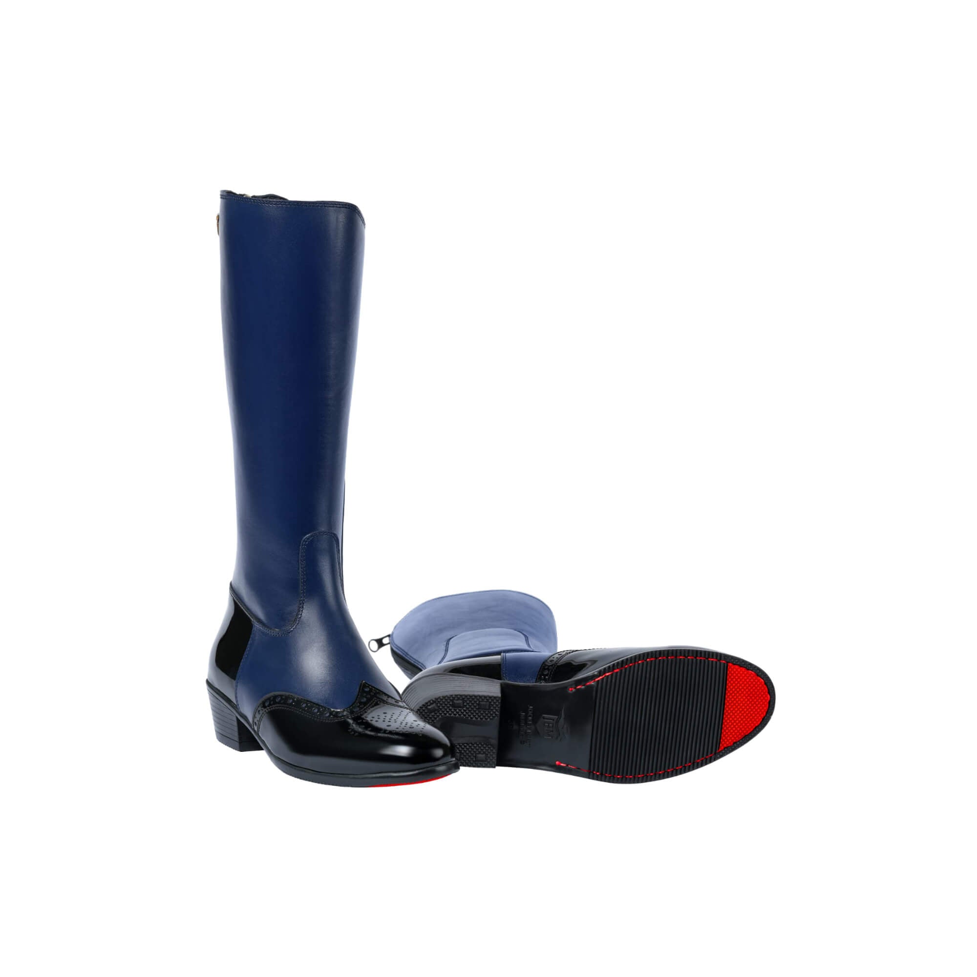 The Yorkshire Tall Boots are where tradition meets attitude. Designed to stand out without shouting, this style pairs rich blue leather with a striking black patent wingtip—creating a silhouette that feels sharp, intentional, and unmistakably premium.