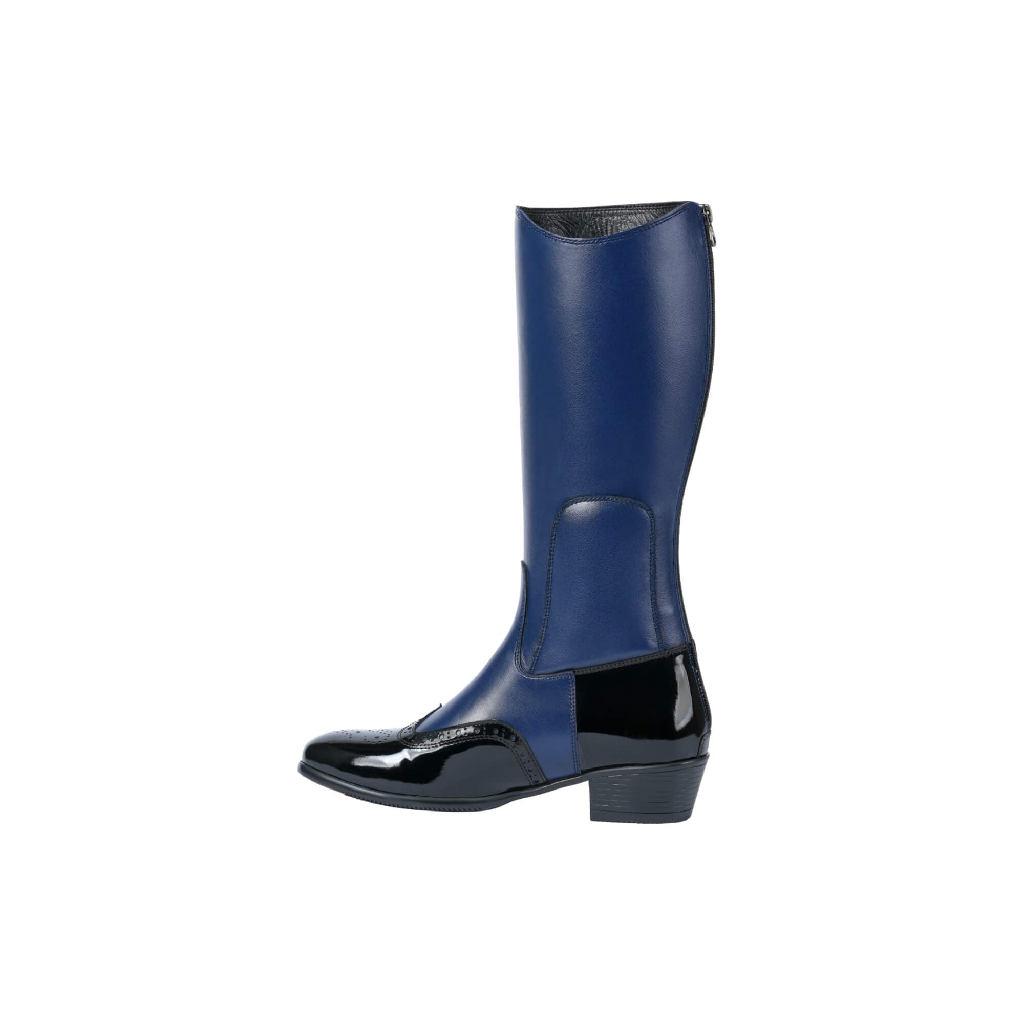 The sculpted Cuban heel adds subtle elevation and presence, while the wingtip detailing nods to classic British craftsmanship. Finished with a smooth full-length zip for ease and a structured shaft that holds its form ride after ride, Yorkshire is built for riders who appreciate detail, confidence, and individuality.