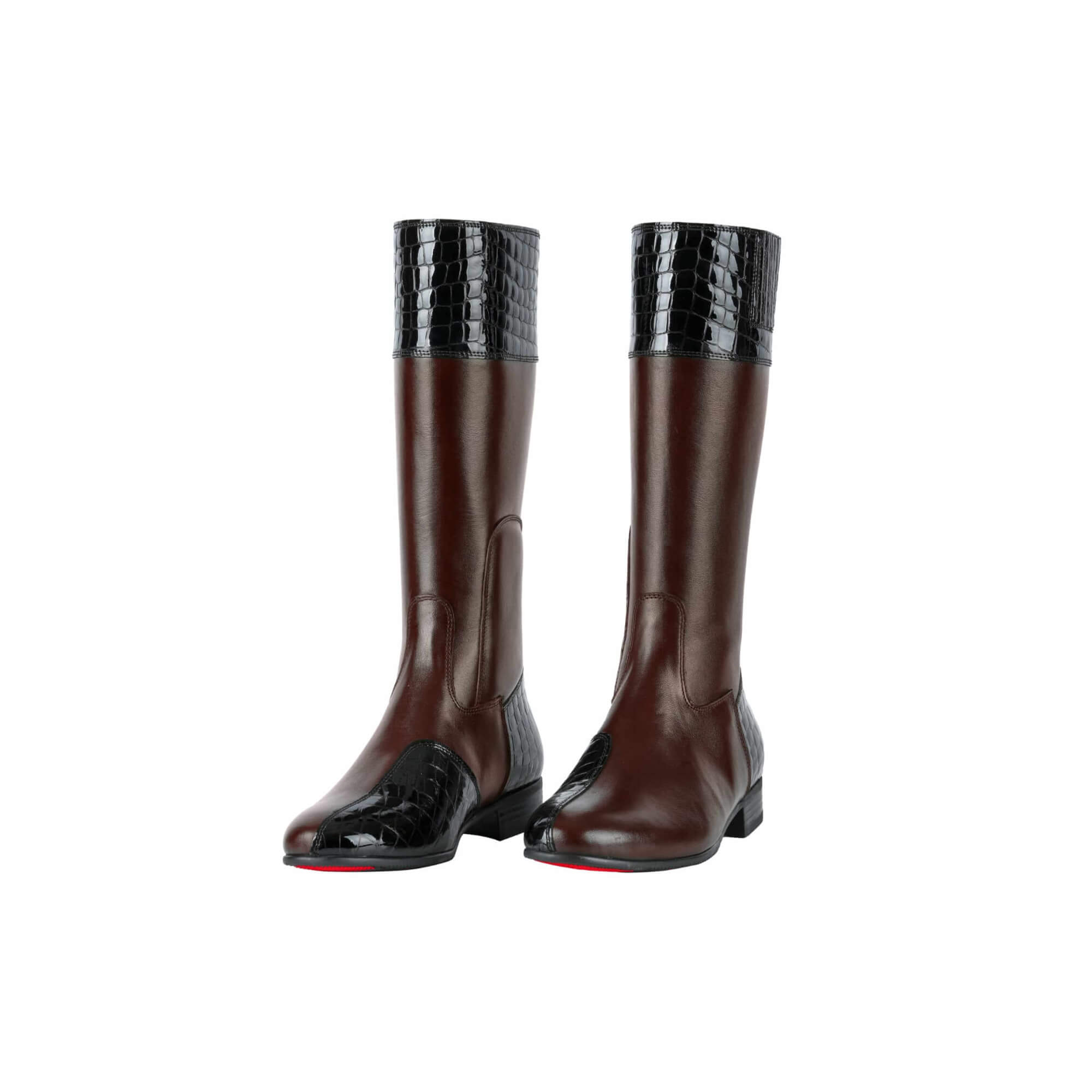 Menzil, Brown Leather, Black Croc, Tall Boots